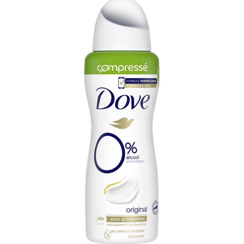 Parce qu'il est important de se sentir bien en toute circonstance, les d& 233;odorants et anti-transpirants Dove ont & 233;t& 233; con& 231;us pour vous prot& 233;ger, quelle que soit la situation. Le d& 233;odorant compress& 233; Dove 0% Original offre une protection 48 h contre les odeurs gr& 226;ce & 224; sa formule sans alcool. Il contient du Zinc, un min& 233;ral naturellement antibact& 233;rien pour agir en harmonie avec votre corps. Avec son & 188; de cr& 232;me hydratante et sa formule anti-irritation, ce d& 233;odorant femme en spray prend soin de vos aisselles. Il vous donne l'assurance de rester fra& 238;che toute la journ& 233;e et laisse une agr& 233;able sensation de douceur sur votre peau. Son format compress& 233; tr& 232;s pratique vous permet de le glisser dans votre sac et offre autant d'utilisations qu'un d& 233;odorant Dove 200ml. Dove est n& 233; aux & 201;tats-Unis en 1957 avec la production de pains de toilette contenant & 188; de cr& 232;me hydratante. La marque se distinguait d& 233;j& 224; de ses concurrents en offrant un soin sp& 233;cifique pour les peaux s& 232;ches et sensibles. Avec l& 8217;exp& 233;rience et gr& 226;ce & 224; une & 233;troite collaboration avec le monde m& 233;dical, Dove a approfondi ses recherches et a perfectionn& 233; ses produits de haute qualit& 233; pour l'hygi& 232;ne et le corps. La qualit& 233;, la simplicit& 233; et l& 8217;efficacit& 233; sont des valeurs ch& 232;res & 224; notre marque. Dove souhaite mettre son expertise technologique au service de la beaut& 233;. La marque s& 8217;affirme d& 233;sormais en tant qu& 8217;expert dans les soins nutritifs et r& 233;parateurs & 224; travers des produits hautement efficaces Dove offre aux femmes de vrais rituels de beaut& 233; pour qu& 8217;elles prennent soin d& 8217;elles au quotidien. La mission de la marque: permettre & 224; chaque femme de vivre une exp& 233;rience positive de la beaut& 233;. Pour cela, Dove aide toutes les g& 233;n& 233;rations de femmes & 224; d& 233;velopper une relation positive avec leur apparence. La marque les encourage & 224; d& 233;velopper leur estime de soi afin qu'elles se r& 233;alisent pleinement. Depuis plus de 15 ans, Dove aide les jeunes filles du monde entier & 224; renforcer leur confiance corporelle gr& 226;ce au projet Dove pour l'Estime de Soi. Depuis sa conception, plus de 60 millions de jeunes sens ont & 233;t& 233; sensibilis& 233;s. La Beaut& 233; ne se d& 233;finit pas par les formes, les tailles ou les couleurs - c'est le fait de ressentir le meilleur de nous-m& 234;me. Authentique. Unique. R& 233;elle. Dove s'engage & 224; r& 233;aliser ses communications avec de vraies femmes et non des mannequins professionnels: c'est une vraie version de la Beaut& 233;. ‎Ingredients: Butane, Isobutane, Propane, C12-15 Alkyl Benzoate, Undecane, Zinc Neodecanoate, Tridecane, Parfum, PPG-14 Butyl Ether, Helianthus Annuus Seed Oil, Isopropyl Myristate, Dilauryl Thiodipropionate, Octyldodecanol, Tocopherol, Alpha-Isomethyl Ionone, Benzyl Alcohol, Benzyl Benzoate, Citral, Citronellol, Coumarin, Eugenol, Geraniol, Hexyl Cinnamal, Isoeugenol, Linalool. Produit unitaire EAN 8720181020872.