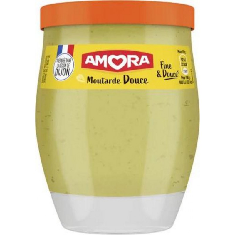 Découvrez notre moutarde douce Amora, préparée dans la région de Dijon*, dans un bocal en verre de 230 g. Tout le goût et toute la finesse d'une moutarde avec une légère touche de piquant pour réveiller les papilles. Partagez ce qu'il y a de meilleur: notre recette de moutarde de caractère au goût unique, riche et délicatement relevé! Elle est idéale pour vos repas, vinaigrettes, encas, dîners, pique-niques et apéritifs. Une moutarde pour régaler toute la famille, petits et grands, et révéler tous les plats. L'astuce du chef: ajoutez une cuillère à soupe de moutarde douce Amora à de la crème fleurette et obtenez une délicieuse recette de sauce pour vos pâtes. Parce qu'il est important pour nous de limiter notre impact environnemental, les bocaux en verre de nos moutardes sont 100% recyclables! Présente dans le cœur des Français depuis 1919, Amora est reconnue et appréciée pour son savoir-faire et la qualité de ses produits. La marque séduit chaque année avec des recettes pleines de goût, simples et originales. Réalisez des recettes faciles et gourmandes et réinventez vos plats en leur donnant toujours plus de goût avec Amora. Sur le bord de l'assiette, dans vos sandwichs ou à chaud, les produits Amora assaisonneront tous vos plats et relèveront les saveurs de votre cuisine. Découvrez ainsi le plaisir de partager de délicieux repas en famille ou entre amis. *Graines de moutarde origine UE et non-UE. Produit unitaire EAN 8720182462046.
