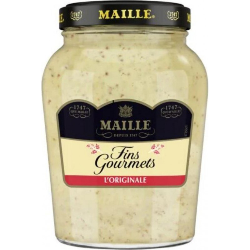 La Spécialité à la moutarde Fins Gourmets Maille est l'alliance unique entre la moutarde de Dijon et la moutarde à l'ancienne rehaussée d'une touche de vin blanc. Depuis près de 270 ans de tradition créative et de savoir-faire, la Maison Maille est animée par la passion d'explorer les saveurs et de faire grandir celle pour la cuisine. Fondée par Antoine-Claude Maille, maître vinaigrier, Maille ouvre sa première boutique de condiments à Paris en 1747, où l'on peut découvrir la richesse de ses moutardes aromatisées. Maille devient ensuite le fournisseur officiel de la cour du roi Louis XV et accède ainsi à la célébrité. Héritiers d'une créativité cultivée depuis près de 3 siècles, les chefs de la Maison Maille conçoivent chaque recette comme une œuvre d'art culinaire. Leur obsession: explorer, sélectionner et associer les meilleurs ingrédients pour apporter son supplément d'âme à chaque recette. Les produits de la marque Maille invitent à un voyage dans le monde des saveurs. Avec comme passagers de choix: le savoir-faire, la passion du détail, l'art de la nuance et le raffinement. Découvrez notre gamme de moutardes: moutarde de Dijon, moutarde à l'ancienne, moutarde mi-forte, moutarde fine douce et nos spécialités à la moutarde ainsi que nos recettes sur www.maille.com. Produit unitaire EAN 8720182557315.