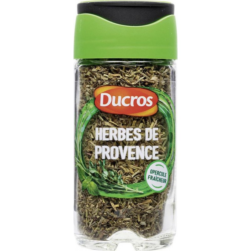 Saviez-vous que le mélange aujourd'hui universel "Herbes de Provence" a été inventé par M. Ducros dans les années 60, quand il allait les cueillir dans la garrigue? Lot économique de 3 flacons. Sarriette, romarin (27%), thym (18%), marjolaine, origan (11%). Produit unitaire EAN 3166290200616, lot de 3 EAN 3701018084316.