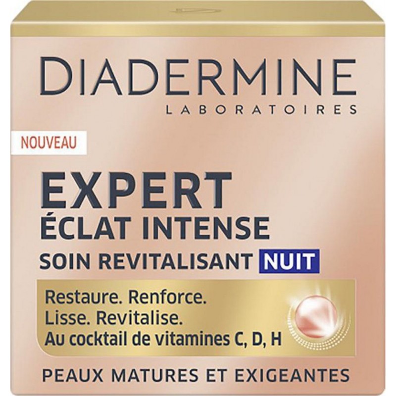L’expertise DIADERMINE Ce Soin de Nuit riche multi-actions stimule l’énergie cellulaire. Dès la 1ère application votre peau est choyée et son teint devient plus éclatant. Dès 4 semaines d’application, la peau paraît revitalisée, plus forte, reflétant un teint radieux et éclatant. Carthamus Tinctorius Seed Oil · Betaine · Ethylhexyl Palmitate · Arachidyl Alcohol Alcohol · Sodium · Hydrolyzed Soy Protein · Cetearyl Alcohol · Hydroxyethyl Urea Glyceryl Stearate · · Bambusa Vulgaris Extract · Hydrolyzed Yeast Protein · 3-O-Ethyl Ascorbic Acid Hyaluronate · · Tocopherol · Pisum Sativum Extract · Biotin · Quassia Amara Extract · Glucosamine HCl Urea · · Bis-Ethylhexyl Hydroxydimethoxy Benzylmalonate · Brassica Campestris Sterols Panthenol · Pentylene · Ethylhexylglycerin · Arachidyl Glucoside · Sorbitan Oleate Biosaccharide Gum-1 · · Caprylyl/Capryl Glucoside · Dimethicone · Butylene Glycol · Sodium Carbomer Glycol · · Sodium Acrylate/Sodium Acryloyldimethyl Taurate Copolymer Ammonium Lactate · Sodium · Parfum · Polyisobutene · Pantolactone Hydrogenated Palm Glycerides Citrate · CI 15985 · Phenoxyethanol · Potassium Sorbate Benzoate. Produit unitaire EAN 3178041337724.