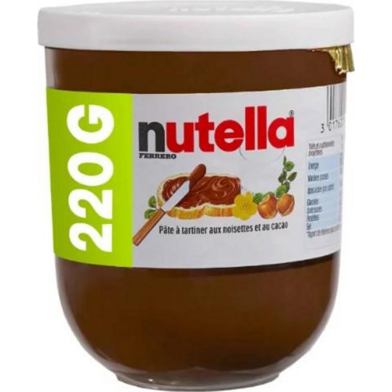 Nutella® est sur les tables du petit-déjeuner de millions de personnes dans le monde depuis plus de 50 ans, offrant de bons moments pour commencer la journée. Une tranche de pain avec du Nutella® a un goût délicieux. Grâce à notre recette unique et inimitable, Nutella® est devenu la pâte à tartiner aux noisettes et au cacao la plus populaire et emblématique du monde. sucre, huile de palme, NOISETTES 13%, LAIT écrémé en poudre 8,7%, cacao maigre 7,4%, émulsifiants: lécithines SOJA, vanilline. Produit unitaire EAN 3017620402678.