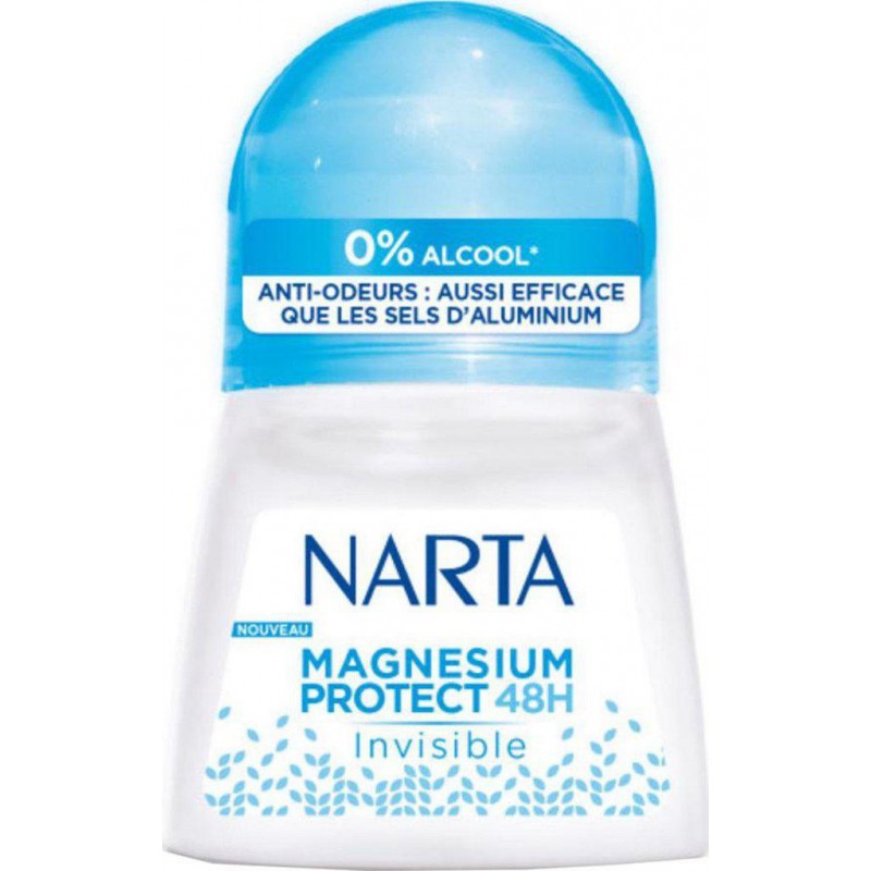 Avec Narta invisible efficace durant 48h, anti-odeur. Un parfum discret et féminin qui vous assure une fraîcheur longue durée. NARTA Invisible est testé sous contrôle dermatologique. Lot économique de 4 roll-ons. AQUA / WATER PROPYLENE GLYCOL PARFUM / FRAGRANCE CAPRYLOYL SALICYLIC ACID MAGNESIUM GLUCONATE SILICA SILYLATE CAPRYLYL GLYCOL DEHYDROXANTHAN GUM XANTHAN GUM PHENOXYETHANOL. Produit unitaire EAN 3600550985962, lot de 4 EAN 3701018081292.