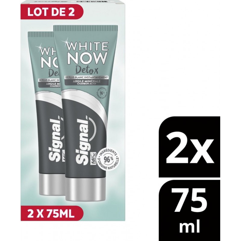 SIGNAL Dentifrice Argile Minérale Charbon Actif White Now Détox les 2 tubes de 75ml