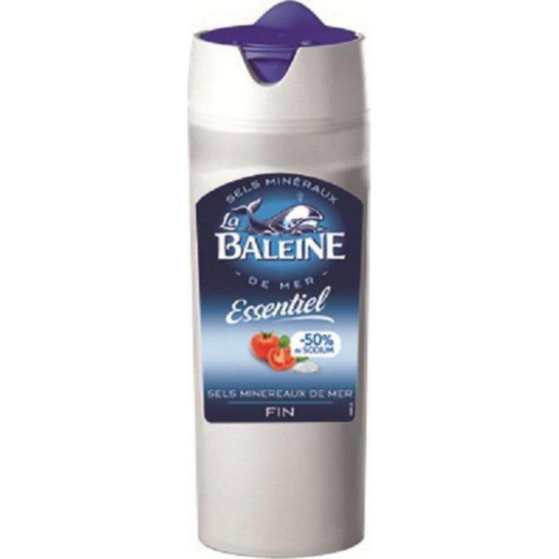 Relevez le goût de votre cuisine avec le sel fin de mer La Baleine naturellement Blanc. Sel de mer (50%) et mineraux de mer Sel: 49 g, sodium: 19,6 g, potassium: 21498 mg, magnésium: 904 mg, calcium: 582 mg. antiagglomerants: oxyde de magnésium. E535 carbonates de magnésium. Produit unitaire EAN 3183280017641.
