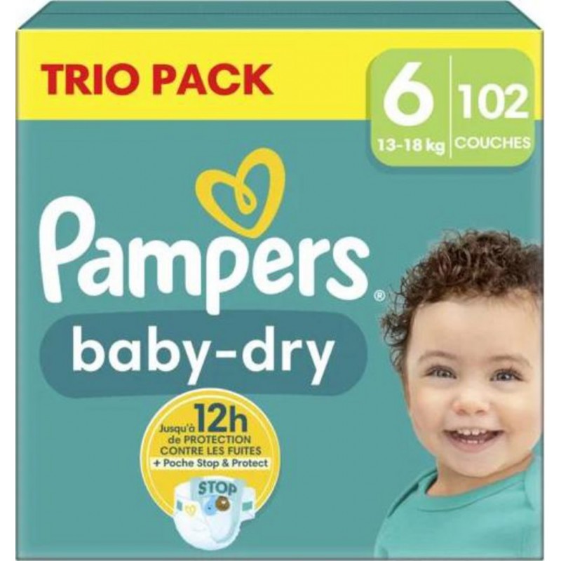 Pampers Baby-Dry Taille 6, 70 Couches, Jusqu’À 12 h De ProtecLa nuit, votre bébé bouge constamment pendant son sommeil. C'est pourquoi Pampers Baby-Dry a une poche Stop & Protect à l'arrière de la couche pour une nuit jusqu'à 100% sans fuites. Comme pour vous, la sécurité de votre bébé est notre priorité: les couches Pampers Baby-Dry sont testées dermatologiquement et contiennent 0% d'allergènes de parfum listés par l'UE (conformément à la réglementation cosmétique de l'UE N°1223/2009). Elles sont testées et certifiées Standard 100 par OEKO-TEX. Vous souhaitez en savoir plus sur la composition de nos produits? Visitez pampers.fr tion, 13Kg-18Kg. Petrolatum, Stearyl Alcohol, Paraffinum Liquidum, Aloe Barbadensis Leaf Extract. Produit unitaire EAN 8700216291279.