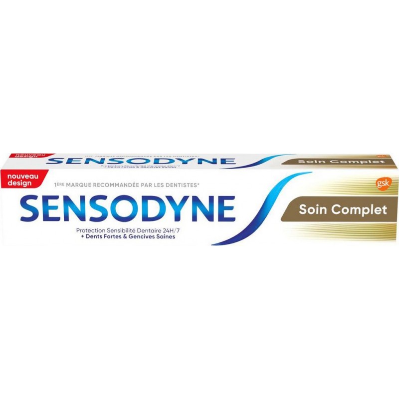 Protection contre la sensibilité cliniquement prouvée. Aqua, Hydrated Silica, Sorbitol, Glycerin, Pentasodium Triphosphate, Potassium Nitrate, PEG-6, Alumina, Aroma, Titanium Dioxide, Sodium Methyl Cocoyl Taurate, Cocamidopropyl Betaine, Xanthan Gum, Sodium Hydroxide, Sodium Saccharin, Sodium Fluoride. Contient du fluorure de sodium à 0,315% p/p (1450 ppm de fluor). Produit unitaire EAN 5054563109620.