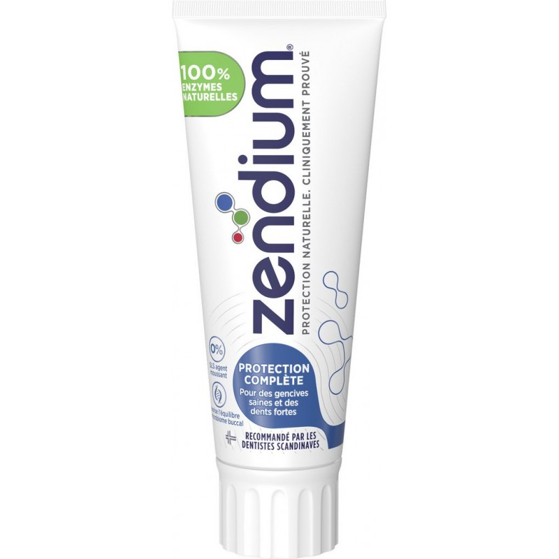 Le dentifrice Zendium Protection Complète est formulé avec des enzymes et des protéines naturelles déjà présentes dans votre bouche pour augmenter les bonnes bactéries associées à une excellente hygiène bucco-dentaire tout en réduisant les mauvaises*. Sa formule enrichie en fluor protège naturellement votre bouche après chaque brossage et aide à combattre les causes de caries et les problèmes de gencives. Sa formule douce mousse délicatement pour respecter l'émail et les tissus délicats de la bouche et n'altère pas le goût des aliments. Sans colorant, vous pourrez constater une évolution naturelle de la couleur de la pâte du dentifrice, sans incidence sur l'efficacité du produit. Le tube souple du dentifrice est 100% recyclable, déposez-le dans un point collecte TerraCycle® afin qu’il soit recyclé. Saviez-vous que notre bouche abrite jusqu'à 100 milliards de bactéries? Nous pourrions penser que toutes les bactéries sont mauvaises, mais en réalité beaucoup d'entre elles sont primordiales pour garder votre bouche en bonne santé. Il est possible d'éviter les problèmes dentaires grâce à un microbiome sain et équilibré, où les bonnes bactéries jouent pleinement leur rôle. Zendium s'est inspiré du pouvoir unique qu'a la bouche de se défendre elle-même, pour développer ses dentifrices en collaboration avec des experts de la santé bucco-dentaire. Conçus pour respecter les tissus délicats, les dentifrices Zendium conviennent à toutes les bouches, même les plus sensibles, comme celles des enfants, des femmes enceintes et des personnes sujettes aux aphtes. Découvrez aussi les dentifrices Protection Fraîcheur, Protection Blancheur et Protection Gencives. Nos dentifrices ne sont pas vendus dans des emballages en carton, sauf si vous achetez un lot de plusieurs dentifrices dans un emballage en carton recyclé. Nous pensons que ces emballages sont inutiles et le carton que nous économisons équivaut à planter 7 arbres par jour! *Données concernant la plaque dentaire provenant d'une étude clinique réalisée sur 102 personnes pendant 14 semaines. Aqua, Hydrated Silica, Sorbitol, Glycerin, Steareth-30, Xanthan Gum, Aroma, Carrageenan, Disodium Phosphate, Sodium Fluoride, AmylogIucosidase, Citric Acid, Zinc Gluconate, Sodium Benzoate, Glucose Oxidase, Sodium Saccharin, Potassium Thiocyanate, Colostrum, Lysozyme, Lactoferrin, Lactoperoxidase. Produit unitaire EAN 8710522605516.