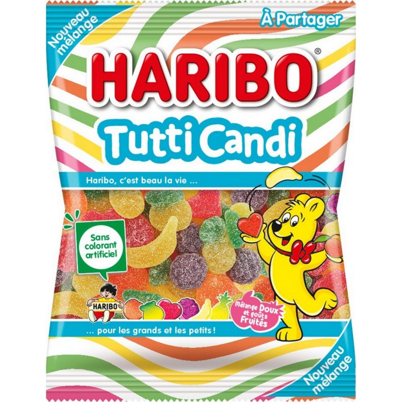 Des bonbons aux goûts généreusement fruités dans une texture moelleuse et fondante unique. Ananas, framboise, banane, mûre, pomme, cassis et pêche. Lesquels préférerez-vous? Un max' de fruits dans ce sachet de 250g! sucre; sirop de glucose; gélatine; dextrose; humectant: sirop de sorbitol; acidifiant: acide citrique; concentrés de fruits et de plantes: carthame, spiruline, citron, pomme, patate douce, radis; arôme; colorants: curcumine, lutéine, carotènes végétaux, anthocyanes. Tenir à l'abri de la chaleur et de l'humidité. Produit unitaire EAN 3103220038529.