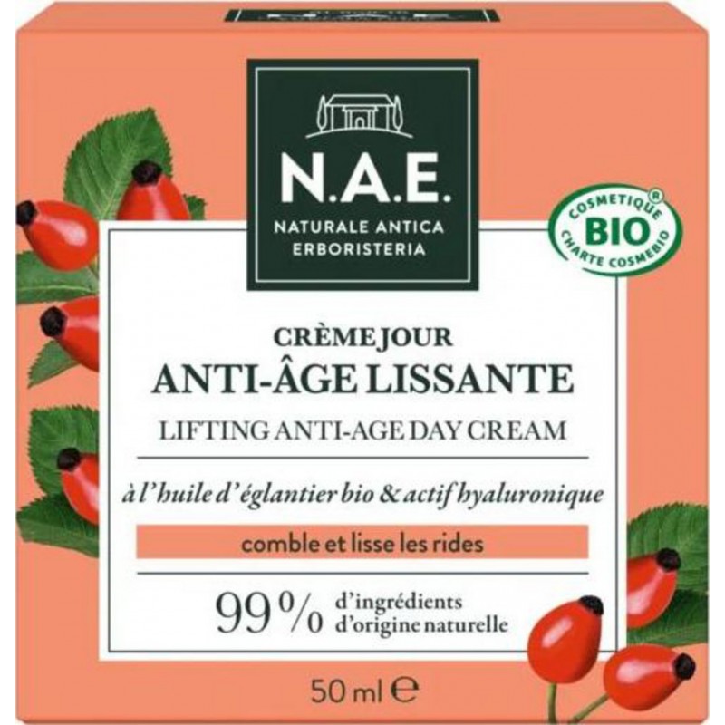 Comble et lisse les rides. Formule Vegan. Enrichie en huile d'églantier bio et en extrait d'écorce d'orange bio, notre crème de jour certifie bio lisse visiblement les rides. Grâce à sa formule à l'actif hyaluronique, la peau est hydratée, lissée et comme repulpée dès la 1ère application. Grâce à sa texture soyeuse, cette crème est facilement absorbée par la peau. Son parfum aux notes florales, d'orange et de citron est d'origine 100% naturelle. Aqua, rosa damascena flower water caprylic/capric triglycéride, glycerin, alcohol denat, behenyl alcohol, helianthus annuus seed oil dicaprylyl carbonate, arachidyl alcohol, hydrogenated coco glycerides, butyrospermum parkii butter betaine, rosa canina fruit oil citrus aurantium dulcis peel extract sodium hyaluronate, tocopherol, mineral salts, mannose, mannitol, saccharide isomerate, pentyle glycol, arachidyl glucoside, sclerotium gum, xanthan gum, citric acid, parfum, limonene, geraniol, citronellol, linalool, citral, sodium benzoate, benzyl alcohol, dehydroacetic acid, potassium sorbate. ingrédient issu de l'agriculture biologique. Transformé à partir d' biologiques. 99% du total sont d'origine naturelle. 25% du total des sont issus de l'Agriculture Biologique. Produit unitaire EAN 3178041350334.