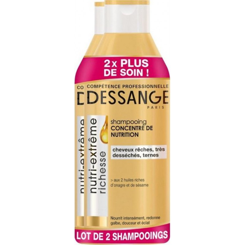 SOINS ET BEAUTE DE CHEVELURE. Lot économique de 2. Aqua/water, sodium laureth sulfate, cocamidopropyl betaine, cetearyl alcohol, ammonium lauryl sulfate, parfum/fragrance, sodium chloride, bis (C13-15 alkoxy) PG-amodimethicone, peg-30 dipolyhydroxystearate, sesamum indicum seed oil/sesame seed oil, trideceth-6, alpha-isomethyl ionone, sodium benzoate, salicylic acid, coumarin, oenothera biennis oil/evening primrose oil, hydroxypropyl guar hydroxypropyltrimonium chloride, citric acid, caprylyl glycol, citronellol, acrylates/C10-30 alkyl acrylate crosspolymer, polyquaternium-7, benzyl salicylate, benzyl benzoate, benzyl alcohol, benzoic acid. (f.i.l. C267323/1). Produit unitaire EAN 3600551049403.