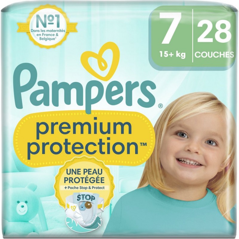 PAMPERS Couches Bébé Taille 8 15Kg+ Premium Protection pack de 28 couches bébé