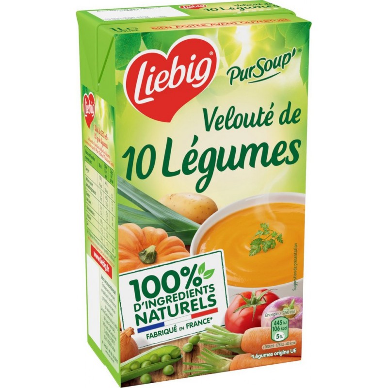 100% d'ingrédients naturels C'est quoi? ✓ des bons légumes ✓ de l'eau ✓ des ingrédients naturels Et c'est tout! Sans colorant Sans conservateur² Sans exhausteur de goût Riche en Légumes ²Conformément à la réglementation Carottes Tomates Oignons Pommes de terre Céleris Petits pois Poireaux Chou-Fleur Potiron Navets Qualité Garantie Nos légumes sont sélectionnés avec soin et cueillis à maturité. Riches de 30 ans de savoir-faire, nous les cuisinons dans notre usine près d'Avignon en Provence. Pour garantir leur conservation sans aucun ajout de conservateur, nos soupes sont chauffées à haute température avant d'être mises en brique. Notre équipe qualité contrôle quotidiennement nos soupes afin de garantir les meilleurs produits. eau,jus de tomate à base de concentré,pomme de terre,carotte,oignon,poireau,potiron,amidon de maïs,CELERI,huile de colza,LAIT écrémé,BEURRE de cuisine,sel,petit pois,chou-fleur,navet,arômes naturels (contient LAIT). Peut contenir des traces de blé (GLUTEN) et ŒUF. Produit unitaire EAN 3036811363147.