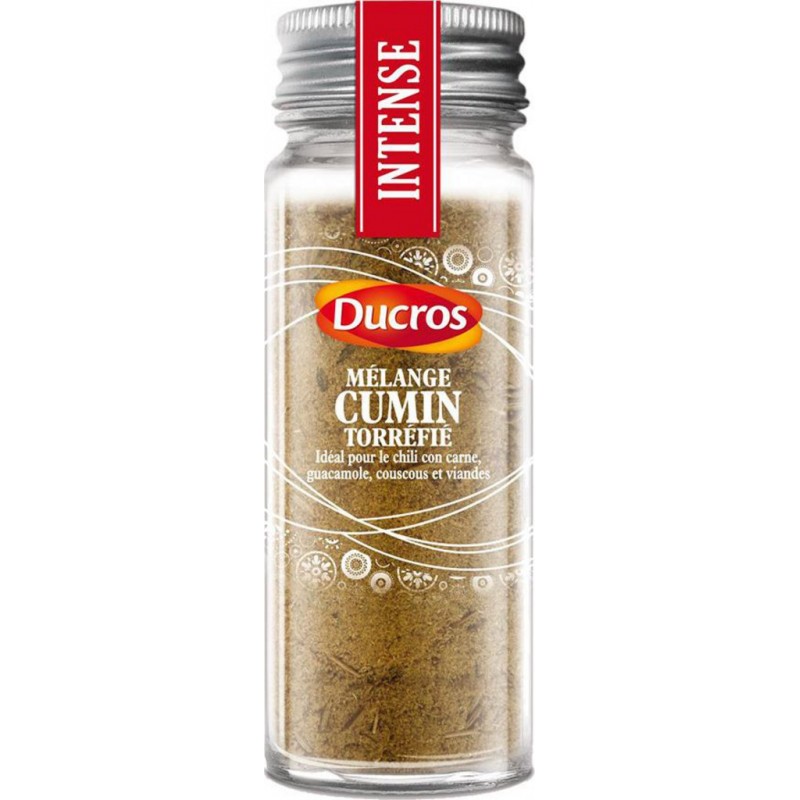 Griller les épices est une tradition qui exhale leurs arômes. Ducros a élaboré ce mélange parfaitement dosé de cumin moulu torréfié et de graines de cumin entières pour une explosion de saveurs. Lot économique de 3 flacons. cumin torréfié moulu (50%), cumin moulu, graines de cumin entières. peut contenir du GLUTEN. Produit unitaire EAN 3166291744676, lot de 3 EAN 3701018086303.