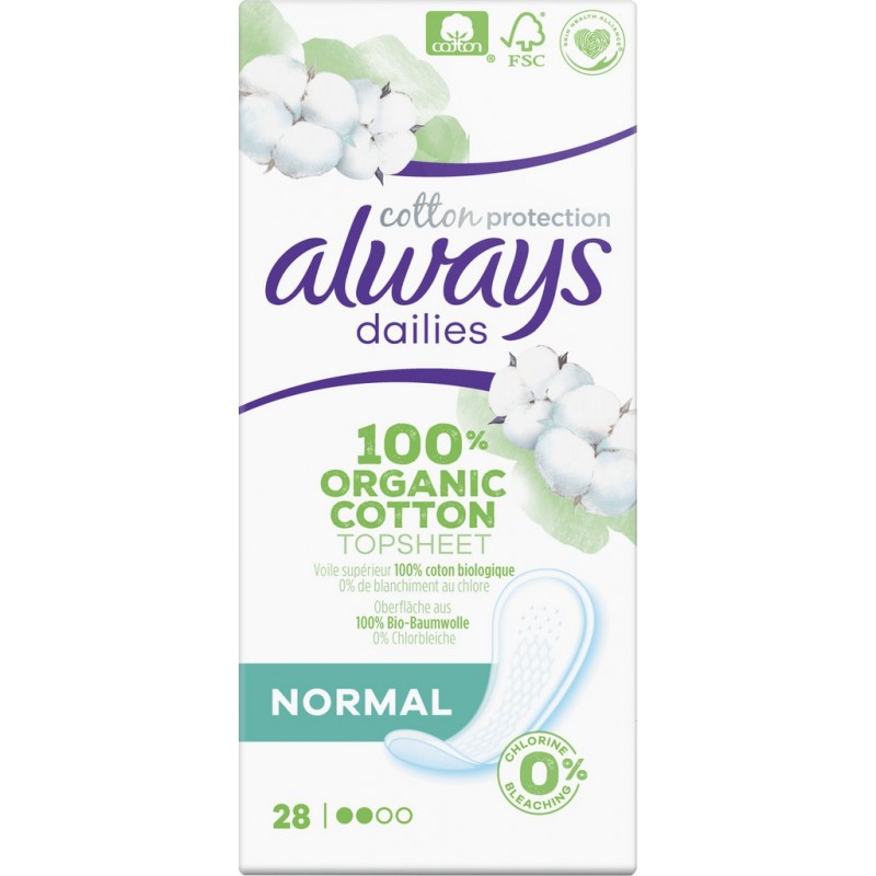 Les protège-slips Always Dailies Cotton Protection Normal ont un voile composé à 100 % de coton biologique. Par ailleurs, ils sont sans parfum et colorant. Ils sont fins et flexibles, conçus pour être confortables et sont dotés d’un cœur absorbant. De plus, ils ont un design micro-aéré. Ces protège-slips ont été approuvés par les dermatologues de la SHA (Skin Health Alliance) et sont certifiés par Cotton Inc. Pour en savoir plus sur nos produits, veuillez consulter notre site Web. Composition: Voile supérieur doux 100% coton biologique, cellulose absorbante et coeur avec du gel super absorbant, film extérieur micro-aéré composé de fibres synthétiques, une colle est utilisée pour que le protège-slip adhère au sous-vêtement. Produit unitaire EAN 8001841388724.